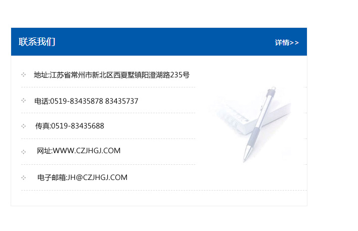 地址:常州市新北區友邦商務大廈1幢16、17層  電話:0519-85101652  傳真:0519-85112595  郵編:213022  網址:www_cz-jiayue_cn.shoujunmuye.com  郵箱:xiajifengaa@163.com